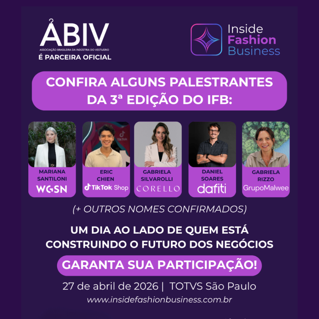 Abertas as inscrições para o Inside Fashion Business Reconfiguração do varejo físico, IA aplicada ao varejo, integração operacional como vantagem competitiva, omnichannel como arquitetura de crescimento, dados como ativo estratégico e experiência como diferencial de marca. Esses são alguns temas que serão tratados na 3ª edição do Inside Fashion Business, evento de imersão voltado às transformações que […]